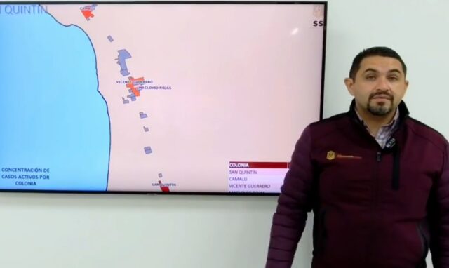 Ante esto, destacó que en la zona sur de Baja California las comunidades que aparecen esta semana con más casos activos son el fraccionamiento San Quintín, Vicente Guerrero, Maclovio Rojas y Camalú.