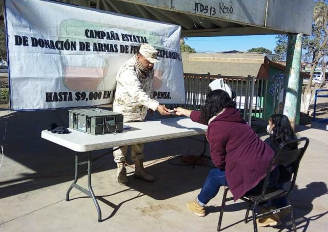La Secretaría de la Defensa Nacional (SEDENA) anunció que continúa vigente la campaña de canje de armas de fuego y explosivos en San Quintín, para lo cual tienen dos módulos en las instalaciones municipales y en el 67 Batallón de Infantería.