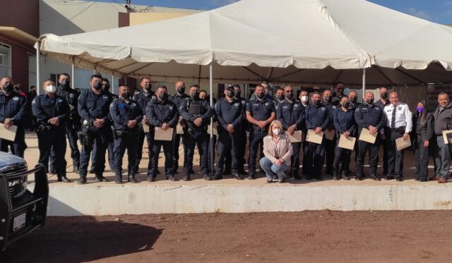 Un total de 60 elementos de la Policía Municipal de San Quintín fueron reconocidos tras concluir con los cursos de justicia cívica, proximidad social y derechos humanos.
