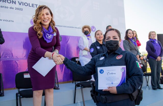 La Gobernadora Marina del Pilar entregó constancias a los 15 agentes que forman parte de la primera generación del Escuadrón Violeta, mismos que acreditaron un curso de sensibilización para la atención a víctimas de violencia familiar y a las mujeres que hayan experimentado la violencia de género.