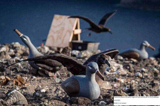La Conanp informó que en coordinación con el grupo de Ecología y Conservación de Islas y Pacific Rim Coservation, implementan el proyecto “Translocación de albatros patas negras del Refugio Nacional de Vida Silvestre Atolón de Midway, EE. UU. a la Reserva de la Biósfera Isla Guadalupe, México”.
