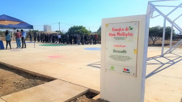 En beneficio de los estudiantes, personal de la Secretaría de Educación, en coordinación con la empresa Driscoll´s y Escuela Sustentable A. C. inauguraron la cancha de usos múltiples de la escuela telesecundaria número 116, en el municipio de San Quintín.