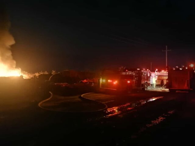 Toneladas de plástico se incendiaron durante la madrugada de este lunes en una recicladora ubicada alrededor de un kilómetro y medio de la carretera en el ejido Leandro Valle, en el municipio de San Quintín.