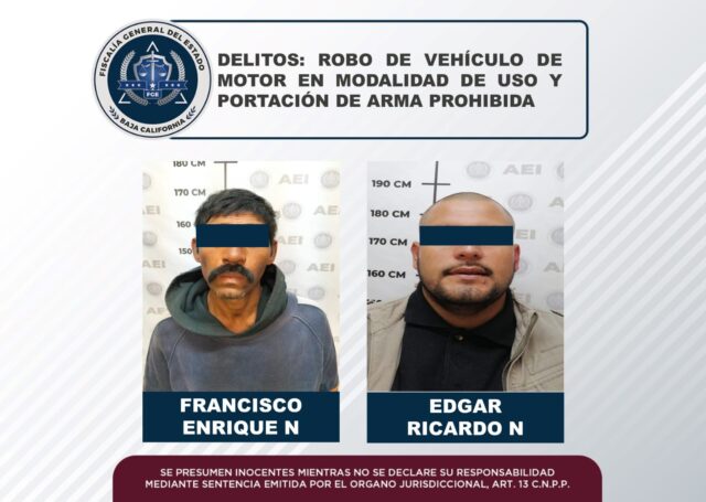 En casos distintos, la Fiscalía Regional de Ensenada obtuvo auto de vinculación a proceso en contra de un hombre por conducir un auto robado, así como de otro individuo asegurado por portar un machete.