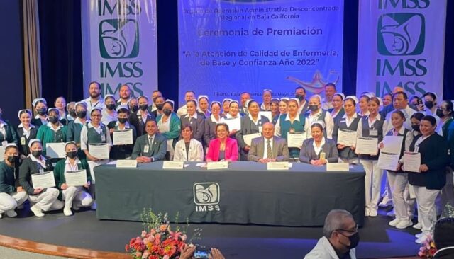 La titular de la institución en Baja California y San Luis Río Colorado, Desirée Sagarnaga Durante, entregó el “Reconocimiento a la Atención de Calidad de Enfermería 2022” a 83 enfermeras y enfermeros del IMSS e IMSS-Bienestar.