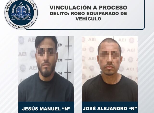 La Fiscalía Regional de Ensenada logró que quedaran bajo proceso penal dos sujetos que, el 18 de mayo del año en curso, fueron detenidos al transportar un Honda Accord con reporte de robo.