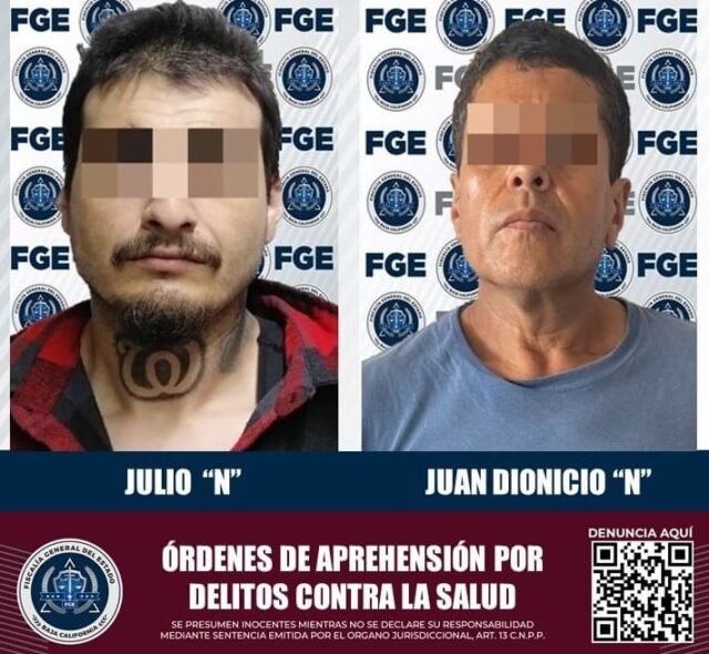 Por el delito de narcomenudeo, elementos de la Fiscalía General del Estado (FGE), cumplimentaron órdenes de aprehensión en contra de dos sujetos en Ensenada.