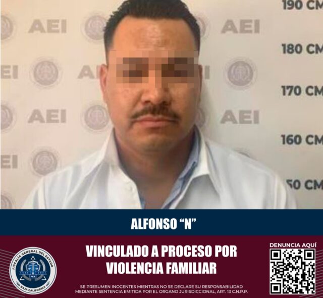 La Fiscalía General del Estado, a través de la Fiscalía Especializada en Delitos Contra Mujeres por Razón de Género, logró que fuera vinculado a proceso penal un sujeto acusado de haber cometido el delito de violencia familiar.