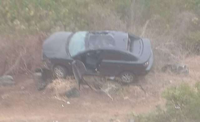 Cae vehículo a desnivel cerca del Cañón de Doña Petra en Ensenada