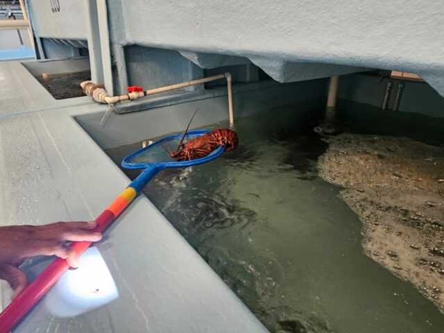 De igual manera, en una tercera inspección y verificación terrestre, encontraron cerca de 329 kilogramos de langosta roja viva, aproximadamente 899 kilogramos de langosta roja entera congelada y un estimado de 16 kilogramos de cola de langosta roja congelada, en interior de un establecimiento pesquero.