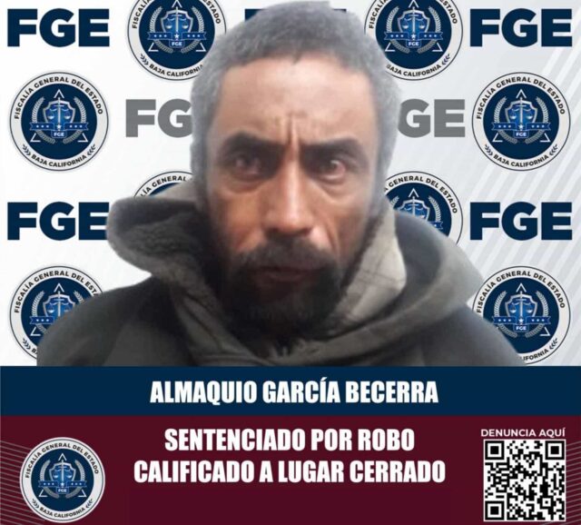San Quintín.- Al avanzar la investigación, la Fiscalía Regional de San Quintín logró una sentencia condenatoria de 3 años y 8 meses de prisión contra Almaquio García Becerra, por el delito de robo calificado a lugar cerrado.