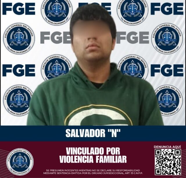 Ensenada.- La Fiscalía Regional de Ensenada logró vincular a proceso a un individuo identificado como Salvador “N”, presunto responsable de los delitos de violencia familiar y lesiones calificadas.