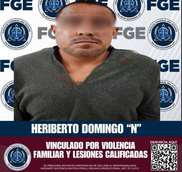 Ensenada.- La Fiscalía Regional de Ensenada logró la vinculación a proceso de Heriberto Domingo “N”, señalado como presunto responsable de violencia familiar y lesiones calificadas.