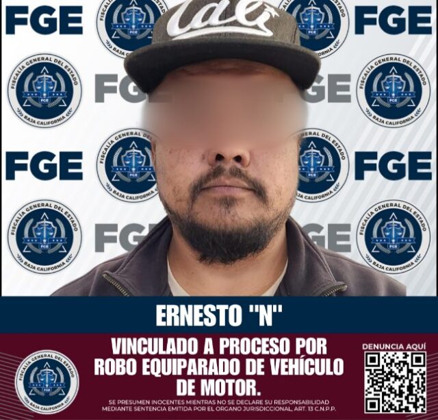 San Quintín.- La Fiscalía Regional de San Quintín obtuvo la vinculación a proceso de Ernesto «N», por su presunta responsabilidad en el delito de robo equiparado de vehículo de motor, en modalidad de uso.