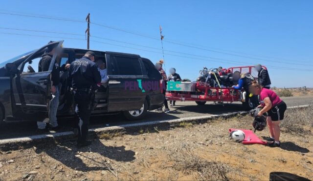 San Quintín.- Aparentemente por caer en un bache sobre la carretera, un motociclista sufrió un accidente en las inmediaciones de Punta Prieta, en el sur del municipio de San Quintín.