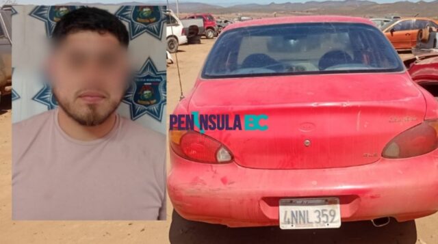 San Quintín.- Un sujeto identificado como José Armando fue detenido por la Policía Municipal tras circular a gran velocidad a bordo de un vehículo con reporte de robo en la delegación Vicente Guerrero, en el municipio de San Quintín.