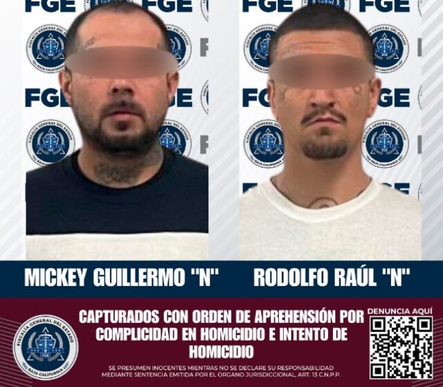 Ensenada.- Como parte de las acciones de coordinación interinstitucional impulsadas por la Fiscal General del Estado, Ma. Elena Andrade Ramírez, agentes de la Fiscalía General del Estado (FGE), en colaboración con la Fuerza Estatal de Seguridad Ciudadana, cumplimentaron órdenes de aprehensión en contra de dos personas de nacionalidad estadounidense con cargos pendientes en su país por delitos graves.