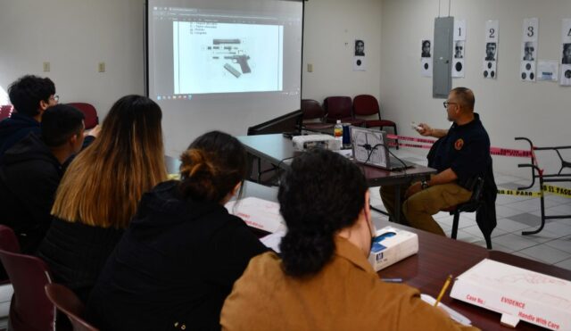 Alumnos del quinto semestre de dicha institución acudieron a las instalaciones del Instituto Estatal de Investigación y Formación Interdisciplinaria de la Fiscalía en Ensenada, donde participaron en el curso “Manejo Seguro de Armas de Fuego en el Lugar de Intervención: Balística Elemental”, impartido por el Agente de Investigación, Paulo César Sánchez Ramírez.