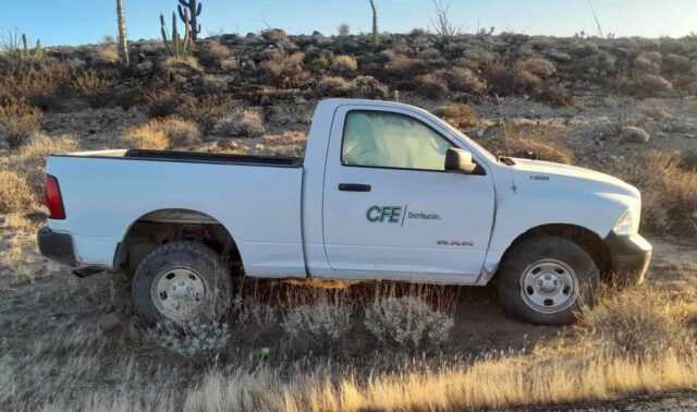San Quintín.- Un trabajador de la Comisión Federal de Electricidad (CFE) sufrió una volcadura en el tramo carretero Cataviña – Punta Prieta, en el sur de San Quintín, tras lo cual no presentaba lesiones de gravedad.