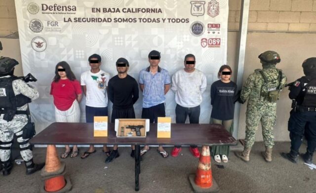 San Felipe. – Luego de dar atención oportuna a una denuncia anónima, agentes de la Fuerza Estatal de Seguridad Ciudadana (FESC), Secretaría de la Defensa Nacional (DEFENSA), Guardia Nacional (GN), y Fiscalía General del Estado (FGE), detuvieron a seis jóvenes con un arma de fuego y dosis de metanfetamina en el municipio de San Felipe.