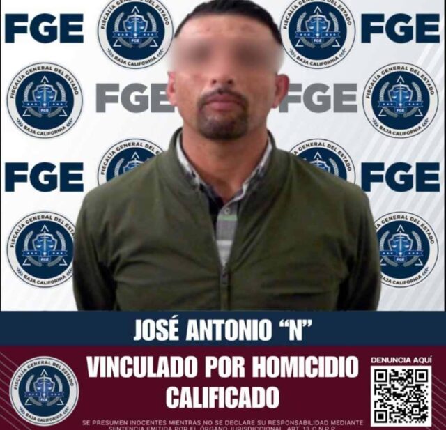 Ensenada.- La Fiscalía General del Estado de Baja California obtuvo la vinculación a proceso de José Antonio “N” por su presunta responsabilidad en el delito de homicidio calificado con ventaja, derivado de hechos ocurridos el 31 de diciembre de 2020 en la colonia Márquez de León, en Ensenada.