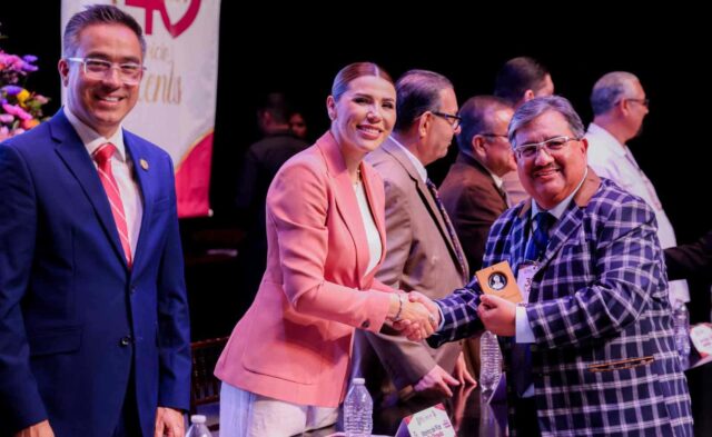 Mexicali.- Como parte de la conmemoración del Día de la Maestra y el Maestro, la gobernadora Marina del Pilar Avila Olmeda encabezó una ceremonia de reconocimiento a 453 docentes con trayectorias de más de 30 y 40 años de servicio en el Teatro del Estado en Mexicali.