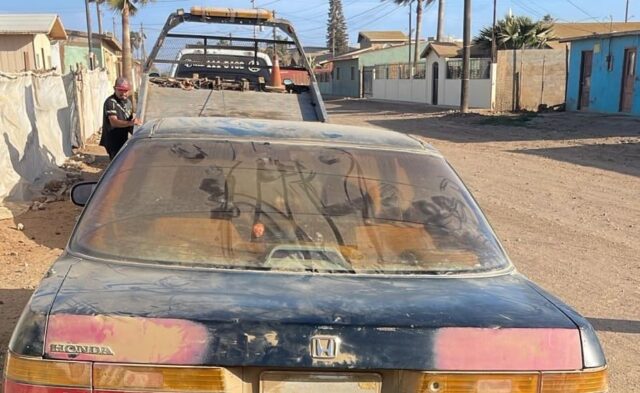 Aunque la unidad se encontraba estacionada sin ningún tripulante, los oficiales iniciaron con la validez de la serie del Nissan Sentra, de color blanco. Tras esto, fueron informados que tenía reporte activo de robo en la ciudad de Tijuana desde el año 2018.