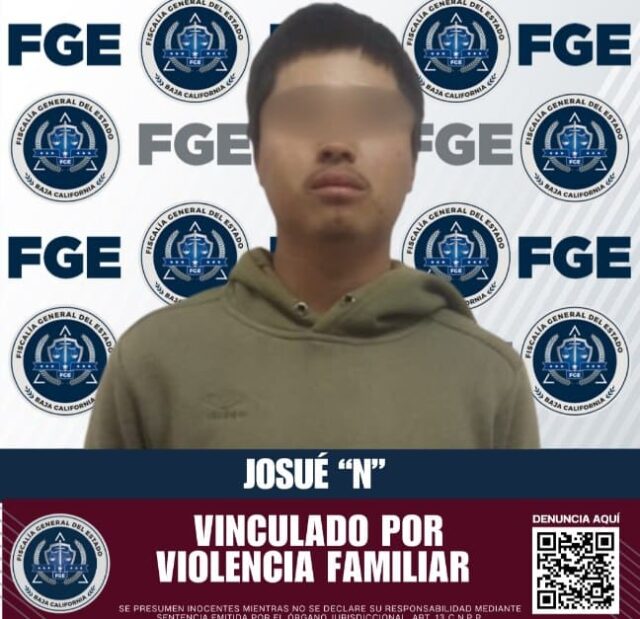 San Quintín.- La Fiscalía Regional de San Quintín, en colaboración con la Unidad de Investigación, logró la vinculación a proceso de Josué “N” por el delito de violencia familiar, luego de que se legalizara su detención.