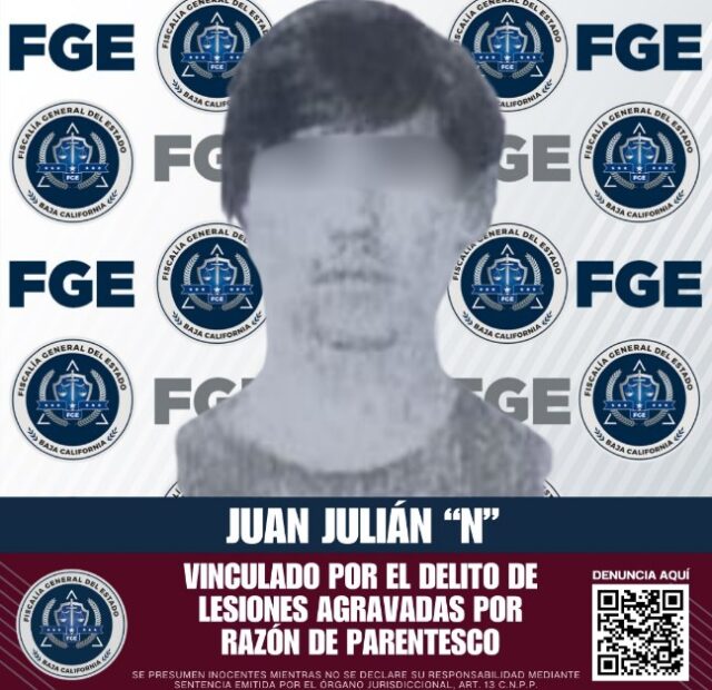 Ensenada.- La Fiscalía Regional de Ensenada, a través de la Unidad de Investigación Francisco Zarco, obtuvo la vinculación a proceso de Juan Julián “N”, por su presunta responsabilidad en el delito de lesiones agravadas por razón de parentesco, derivados de hechos ocurridos en el año 2021 en esta ciudad.