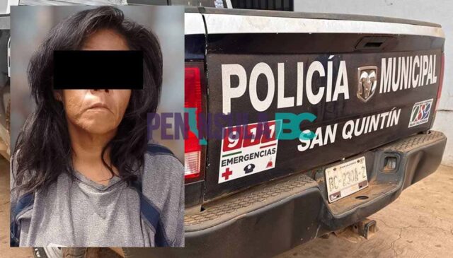 San Quintín.- Una mujer de 48 años de edad fue detenida por la Policía Municipal al tener consigo doce envoltorios de drogas sintéticas, mismos que arrojó al sentirse observada.