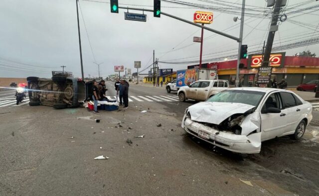 Este segundo vehículo transitaba con luz verde en dirección de oriente a poniente, y como resultado del impacto fue proyectado hacia su derecha, terminando volcado sobre su costado.