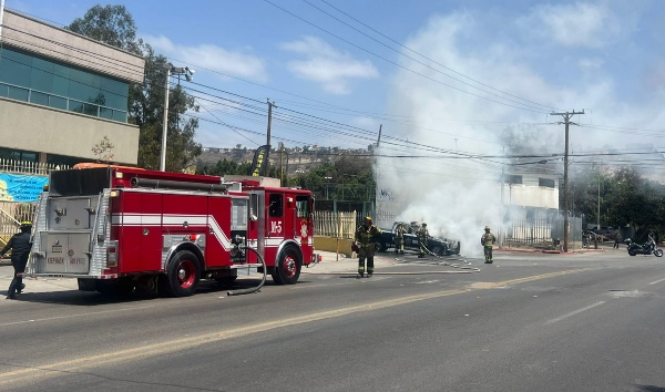 Inicio Estatal Patrulla se incendia mientras circulaban en avenida de Tijuana