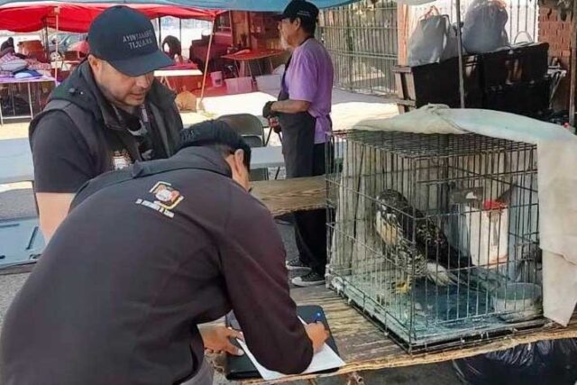 Tijuana.- Como parte de la protección del bienestar animal, inspectores municipales rescataron – en dos operativos separados – a 21 aves, incluyendo un halcón, que vendían ilegalmente en la vía pública y en un mercado ambulante de Tijuana.