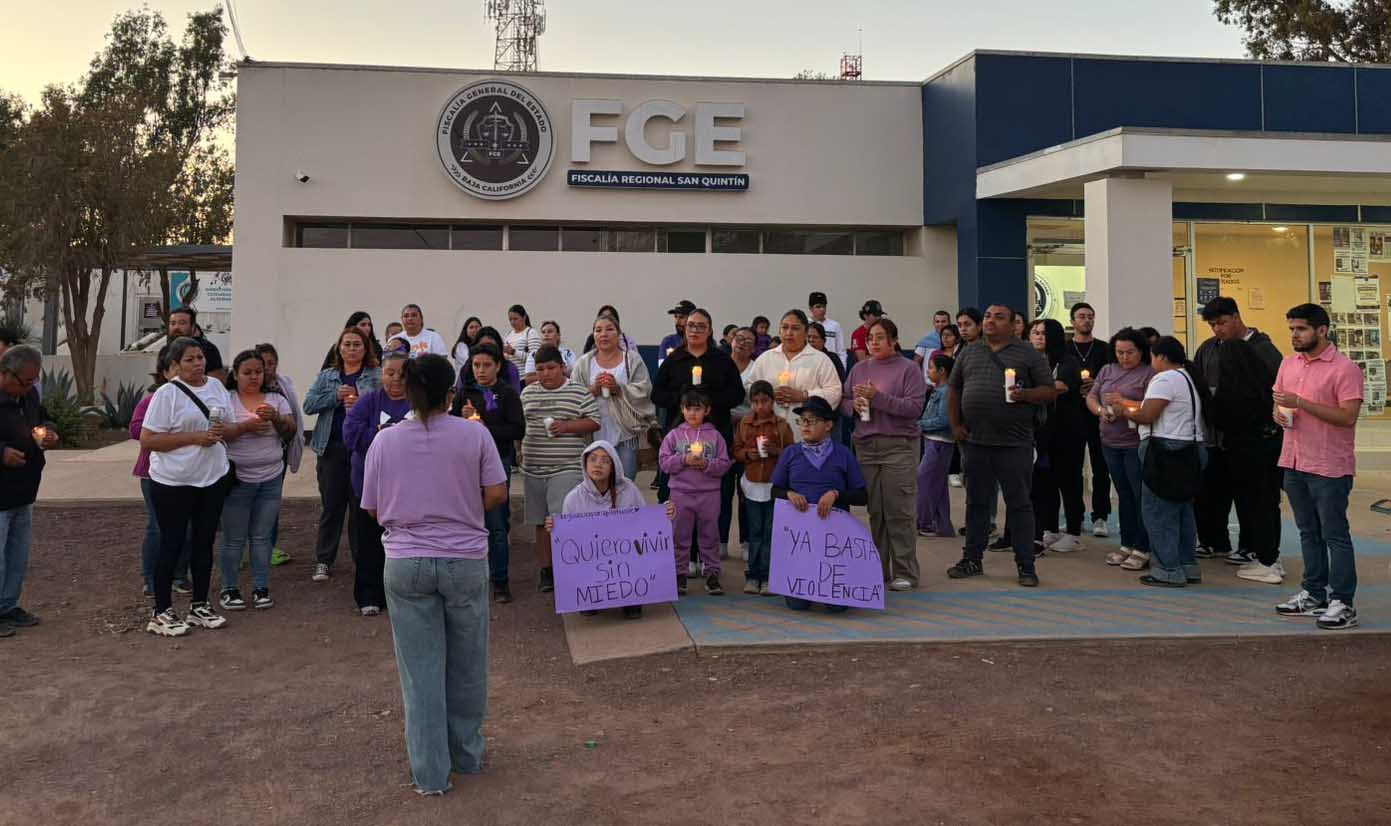 San Quintín.- A raíz del asesinato de una niña en El Rosario, madres, jóvenes y ciudadanos participaron en una vigilia pacífica en el exterior de la Fiscalía Regional de San Quintín para emitir un mensaje enfocado en denunciar los casos de violencia, reforzar la crianza y las sanciones contra los agresores.