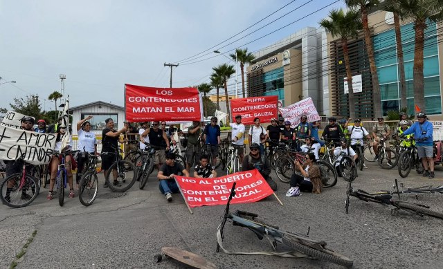 Ensenada.- Alrededor de 50 ciclistas se manifestaron frente a las administraciones de Asipona, como parte de la Rodada contra el proyecto de ampliación del Puerto de El Sauzal.