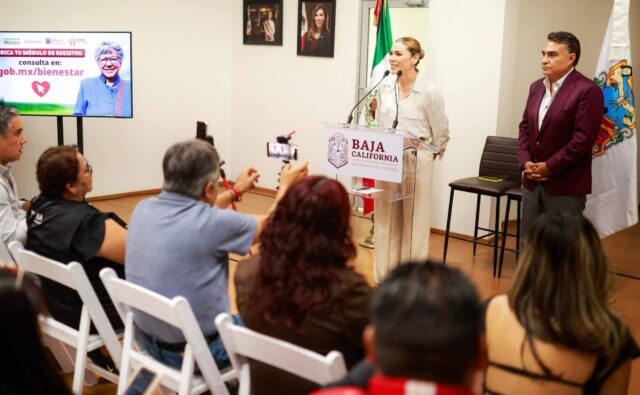 Tijuana.- La gobernadora de Baja California, Marina del Pilar Avila Olmeda, y el delegado de Programas para el Bienestar en el estado, Alejandro Ruiz Uribe, anunciaron el inicio del registro para la Pensión Mujeres Bienestar, dirigida a mujeres de 60 a 64 años de edad.
