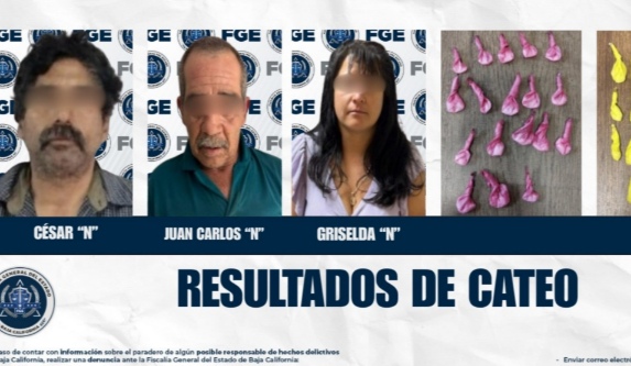 Ensenada.- Como parte de sus acciones, la Fiscalía Especializada en Narcomenudeo, en coordinación con agentes de la Agencia Estatal de Investigación (AEI), ejecutó dos cateos en distintos puntos de Ensenada, logrando la detención de tres personas y el aseguramiento de droga e inmuebles.