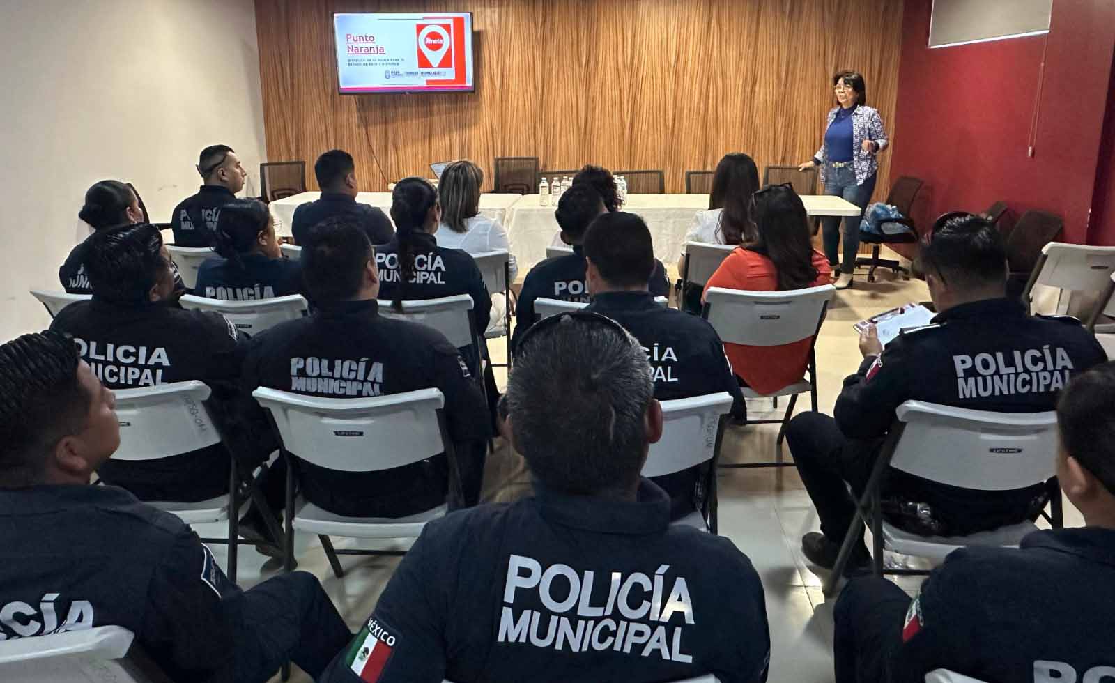 Dicha capacitación correspondiente, sobre la próxima instalación de los Puntos Naranja, así como los primeros auxilios psicológicos que son estos espacios para mujeres, niñas, niños y adolescentes, en situación de violencia.