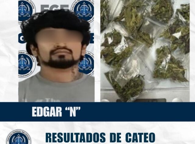 En el interior del domicilio inspeccionado fue localizado Edgar “N”, quien fue detenido tras encontrarse en posesión de 10 envoltorios de plástico que contenían hierba verde y seca, con características propias de la marihuana.