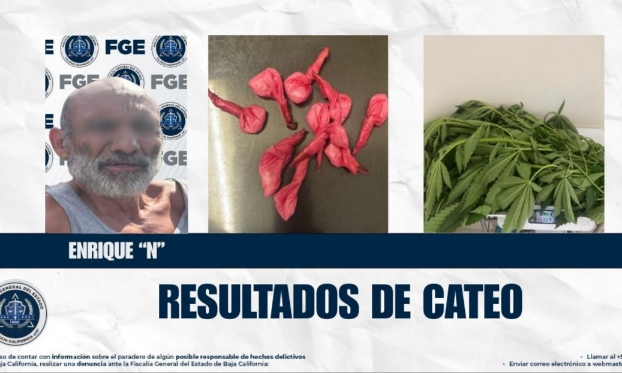 En el lugar fueron asegurados diez envoltorios de plástico color rosa que contenían metanfetamina con un peso total de 2.7 gramos, así como cuatro plantas de marihuana con un peso aproximado de 1.595 kilogramos. Además, se procedió al aseguramiento del inmueble.