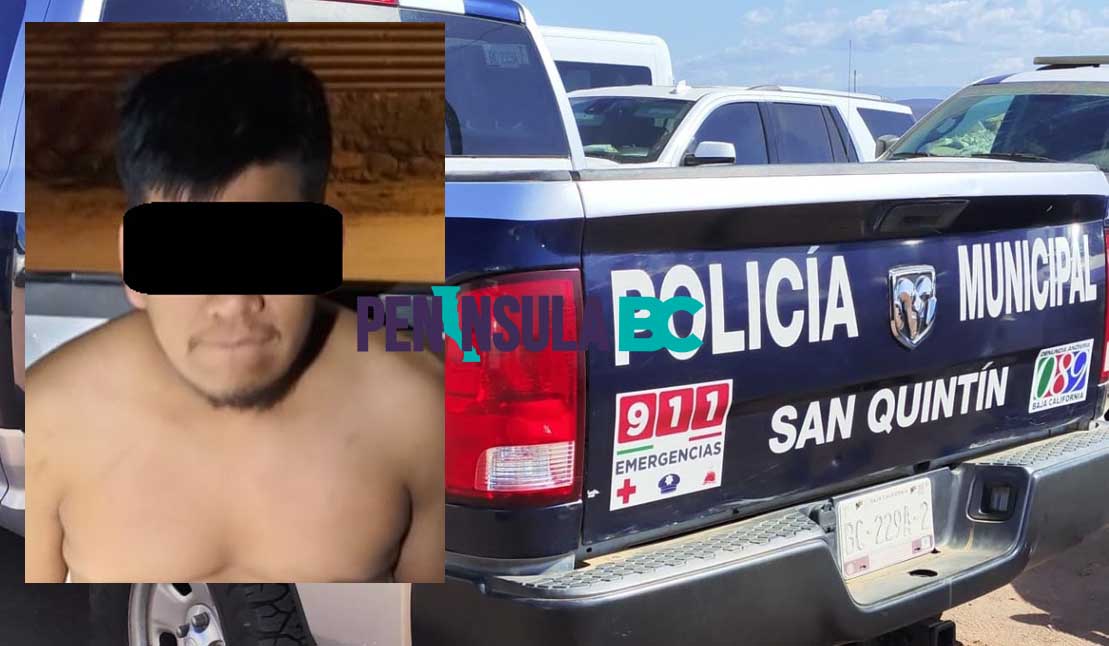 San Quintín.- Al ser sorprendido golpeando a una mujer, la Policía Municipal detuvo a Yusmar N en el interior de una cuartería del ejido El Papalote, en el municipio de San Quintín.