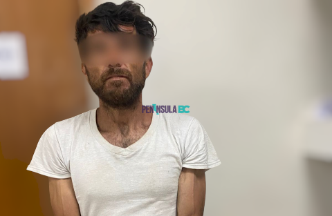 San Quintín.- Un sujeto identificado como Abel, aparentemente bajo los influjos de alguna droga, fue detenido tras ser señalado de robar a un transeúnte, introducirse al domicilio e intentar atacar a la Policía Municipal.
