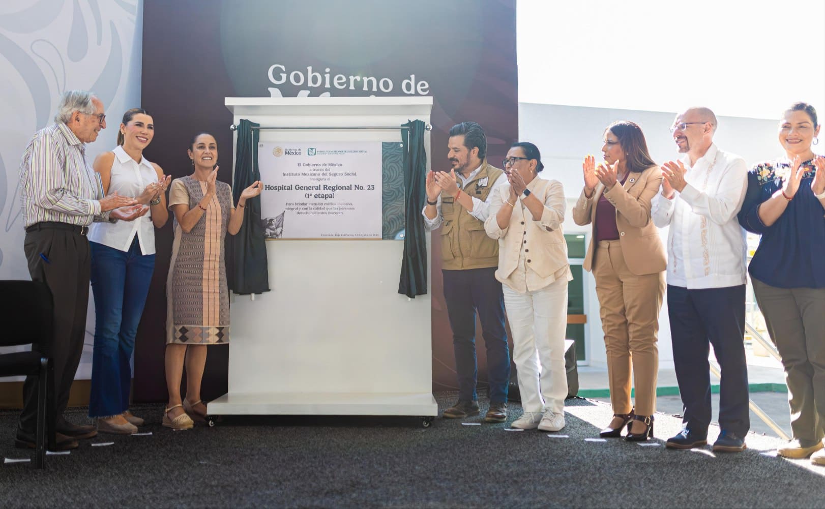 Ensenada.- En busca de ampliar la cobertura médica, la gobernadora Marina del Pilar Avila Olmeda acompañó a la presidenta Claudia Sheinbaum Pardo, en la inauguración de la primera etapa del Hospital Regional No. 23 del Instituto Mexicano del Seguro Social (IMSS) en Ensenada.
