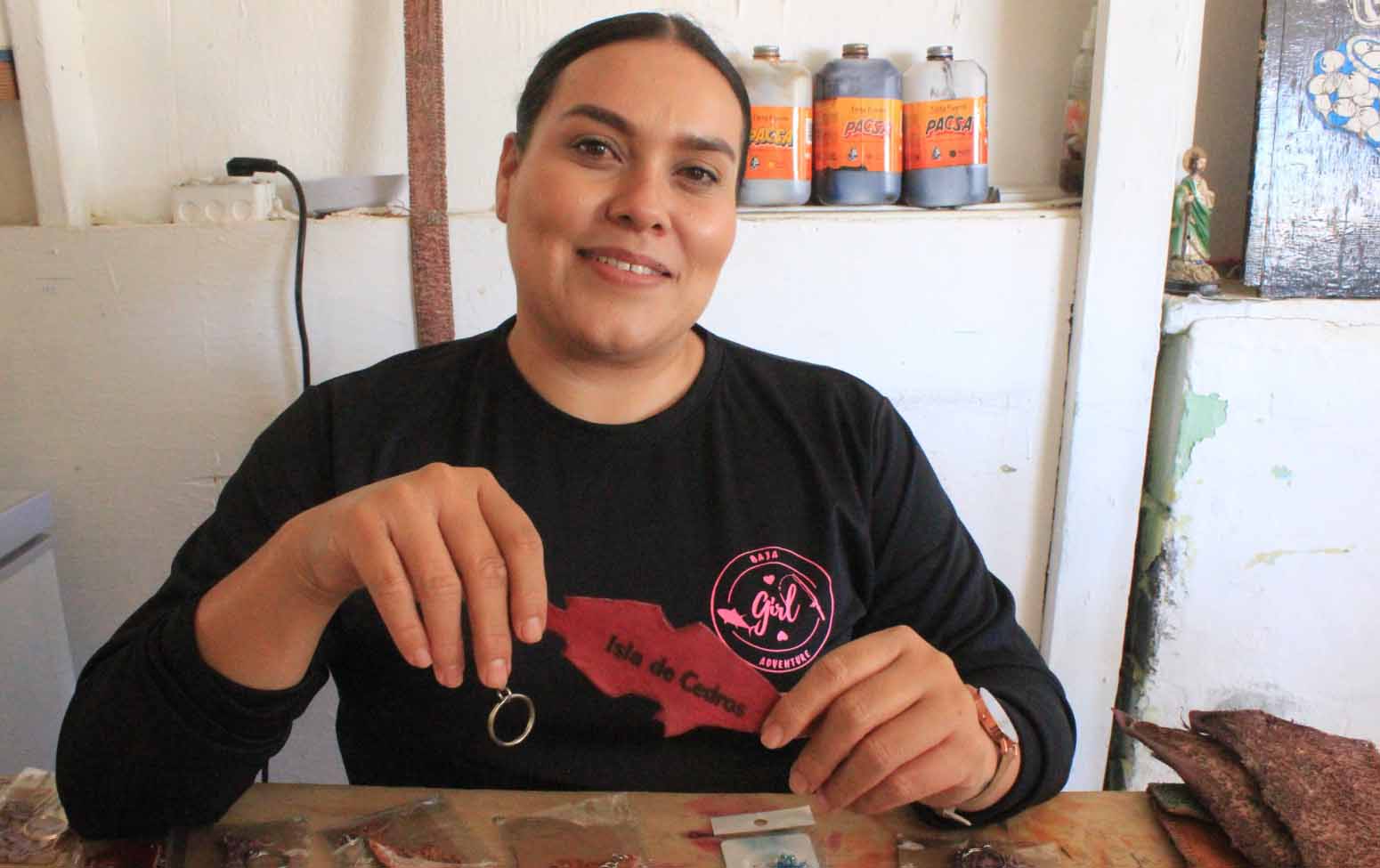 “Aprovechamos lo que nos da el bendito mar en esta región alejada, y trabajamos con piel y escamas de curvina, jurel, cabrilla, blanco, incluso de tiburón cuando hay temporada, con lo que elaboramos bolsas, carteras, cintos, llaveros, collares, aretes, pulseras, y el colágeno que es un producto para la salud de la piel”, señaló.