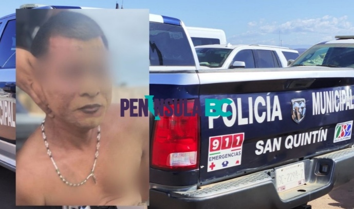 San Quintín.- Un sujeto de 27 años de edad fue detenido tras amenazar a su madre con un machete e intentar usarla de rehén para evitar la intervención de la Policía Municipal en San Quintín.