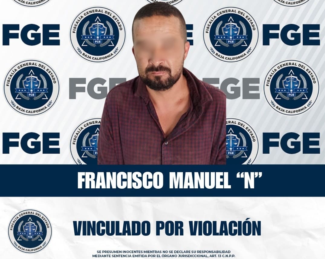 Ensenada.- La Fiscalía Regional de Ensenada obtuvo la vinculación a proceso en contra de Francisco Manuel “N”, de 43 años de edad, por su probable responsabilidad en el delito de violación, en agravio de una mujer.