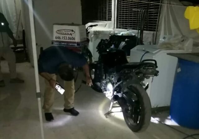 Ensenada.– Al complementar una orden de cateo, agentes de la Fiscalía Regional de Ensenada, a través de la Unidad de Investigación de Robo de Vehículos, recuperó una motocicleta con reporte de robo y detuvo a una persona en flagrancia delictiva.