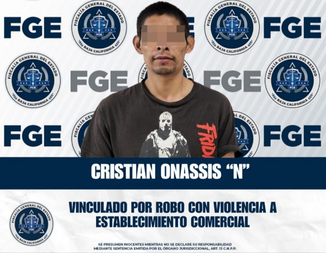 Ensenada.- Como resultado de la labor realizada por la Unidad de Investigación de Robos de la Fiscalía Regional de Ensenada, lograron la vinculación a proceso de Cristian Onassis “N”, por su presunta participación en dos hechos distintos relacionados con el delito de robo calificado a establecimiento comercial abierto al público, ejecutado con violencia.