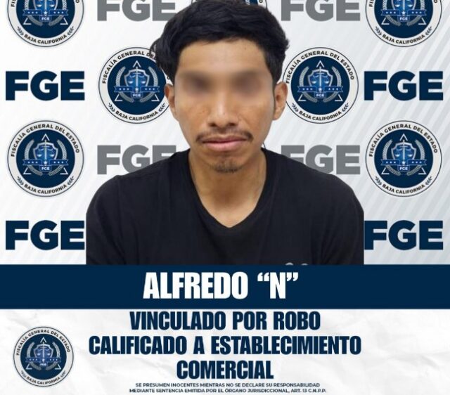 San Quintín.- La Fiscalía Regional de San Quintín obtuvo la vinculación a proceso en contra de Alfredo “N”, por el delito de robo calificado cometido en establecimiento comercial abierto al público, ocurrido en la delegación Vicente Guerrero.