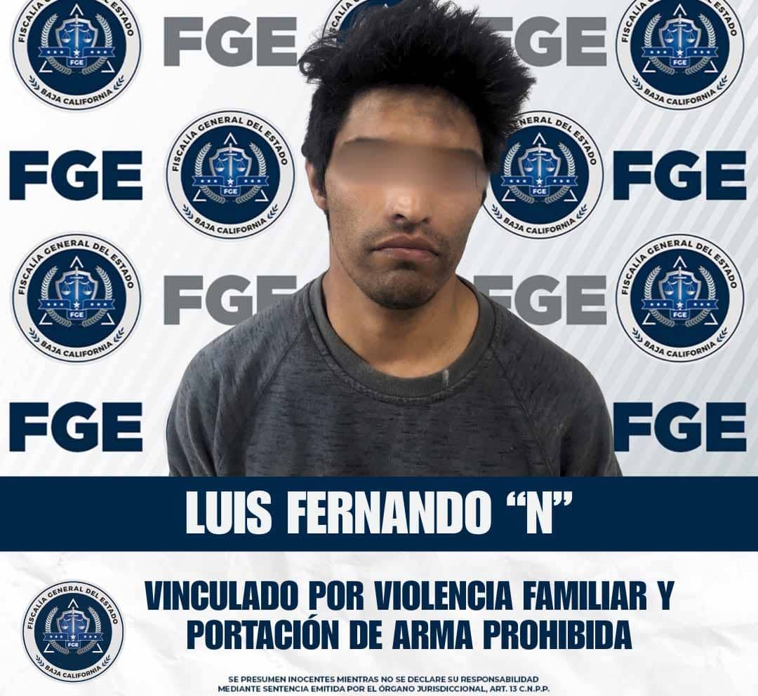Ensenada.- Tras hechos ocurridos en la colonia Bellavista, la Fiscalía Regional de Ensenada, en coordinación con la Unidad de Investigación con Detenido, logró la vinculación a proceso de Luis Fernando “N”, por los delitos de violencia familiar y portación de arma prohibida.